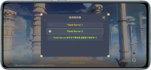 如果您想要游玩B服,等待资源资源下载完成后重新进入游戏并选择 Tianli Server B。