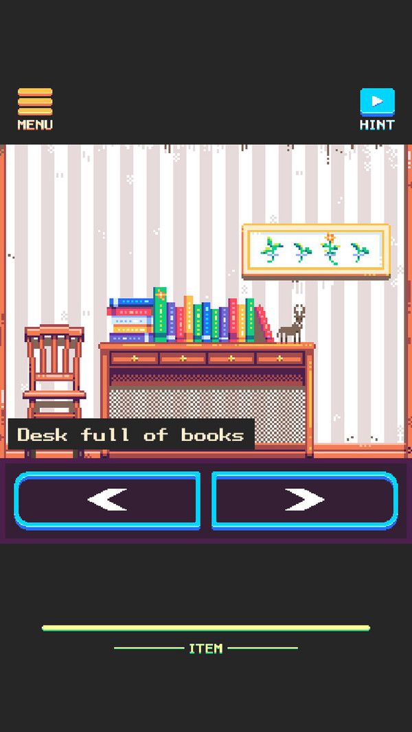 《像素逃生房间》在这款游戏中玩家会在一个房间里,你要在这里找到很多线索让你逃出去才行,而且游戏会有像素画面。你要对里面每个地方进行寻找,不要放过任何的蛛丝马迹,你也可以在各种书籍里发现线索,将这些线索连接在一起,就有机会逃生了。