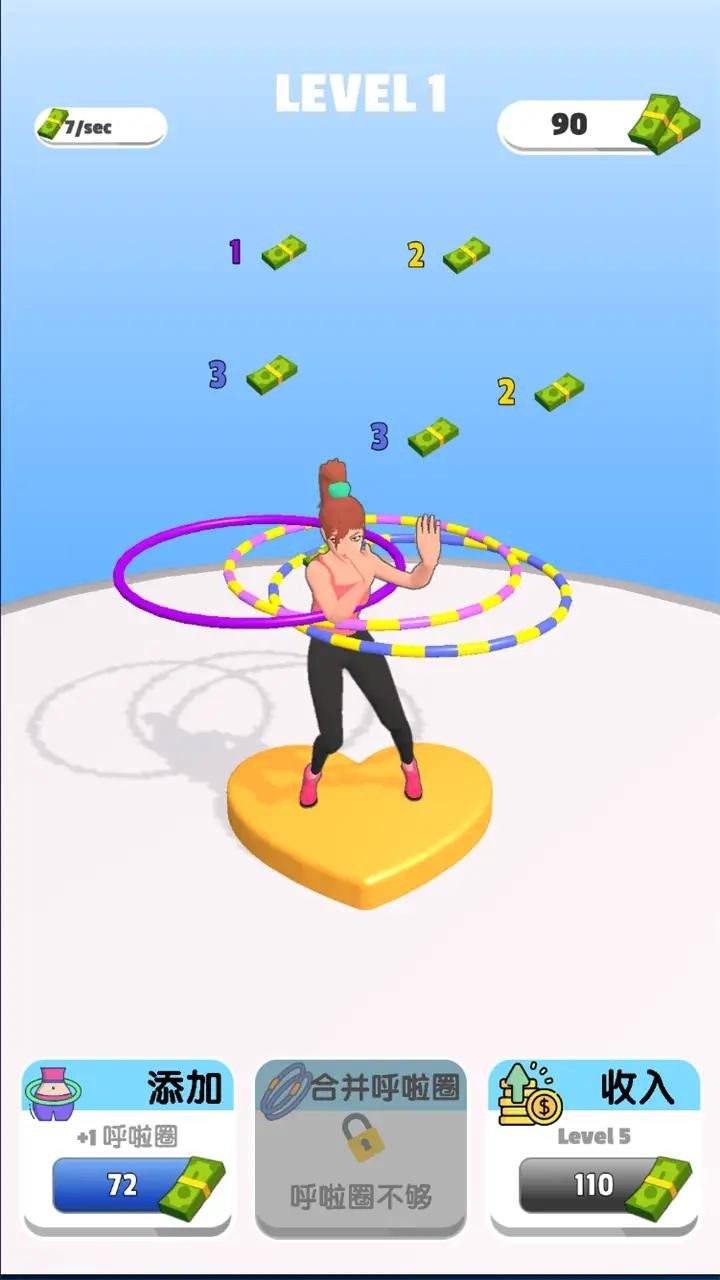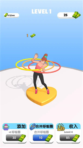 1.游戏有着卡通的画面效果,转动呼啦圈的动作相当的生动,有着非常舒适的视觉感受,带来更多的乐趣。