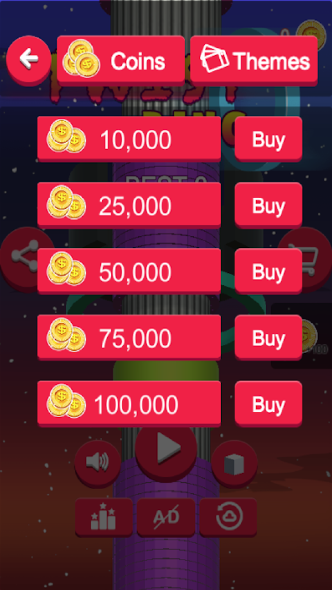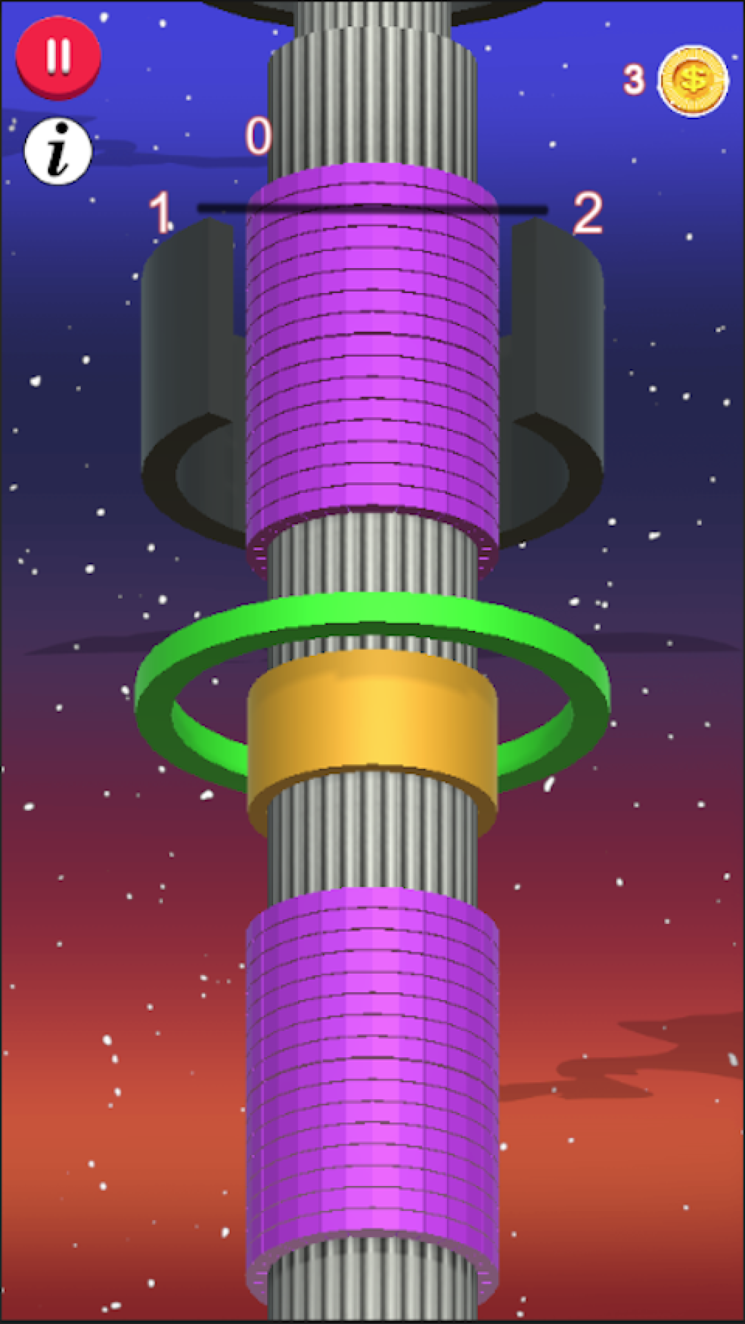 1、在游戏里的柱子上面摆布着颜色的立方体,玩家要经过转动的方式来让小球脱落,获得更多的积分;