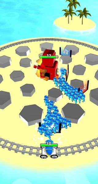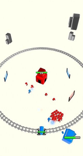 2、滑动屏幕控制大炮左右移动,沿着铁轨围绕敌人的塔楼运行,并发射小兵。