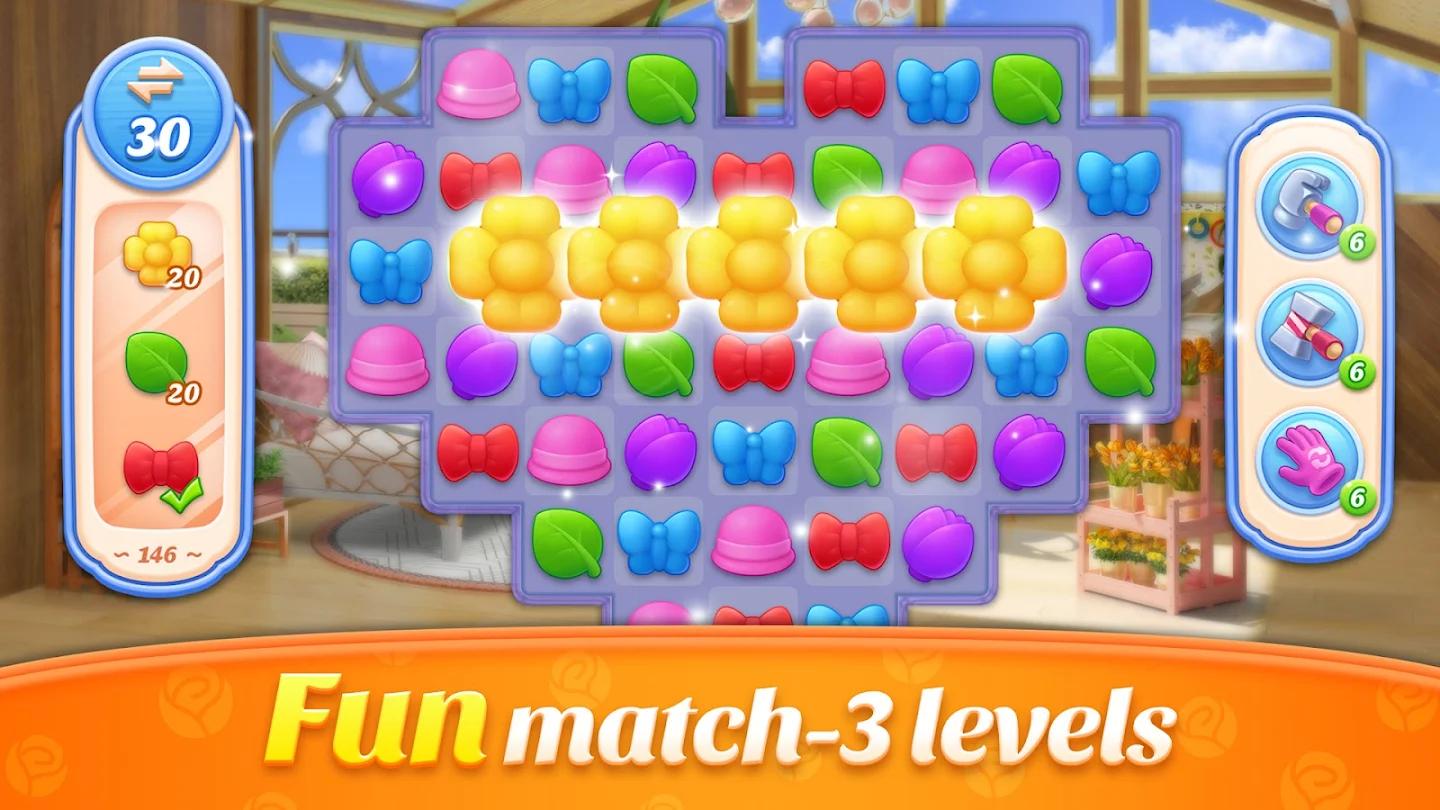 《花店改头换面》是一款非常好玩的休闲经营类游戏,其主要的玩法是消除与装修,玩家需要帮助女主角经营她的花店,通过消除玩法来培养种植各种品种的花卉,并通过装修与更换家具让店面变得焕然一新,就能吸引更多的顾客来买花了。花店改头换面游戏的玩法轻松有趣,可以用消除玩法为你解压,也可以用美丽的花卉治愈你的心灵。