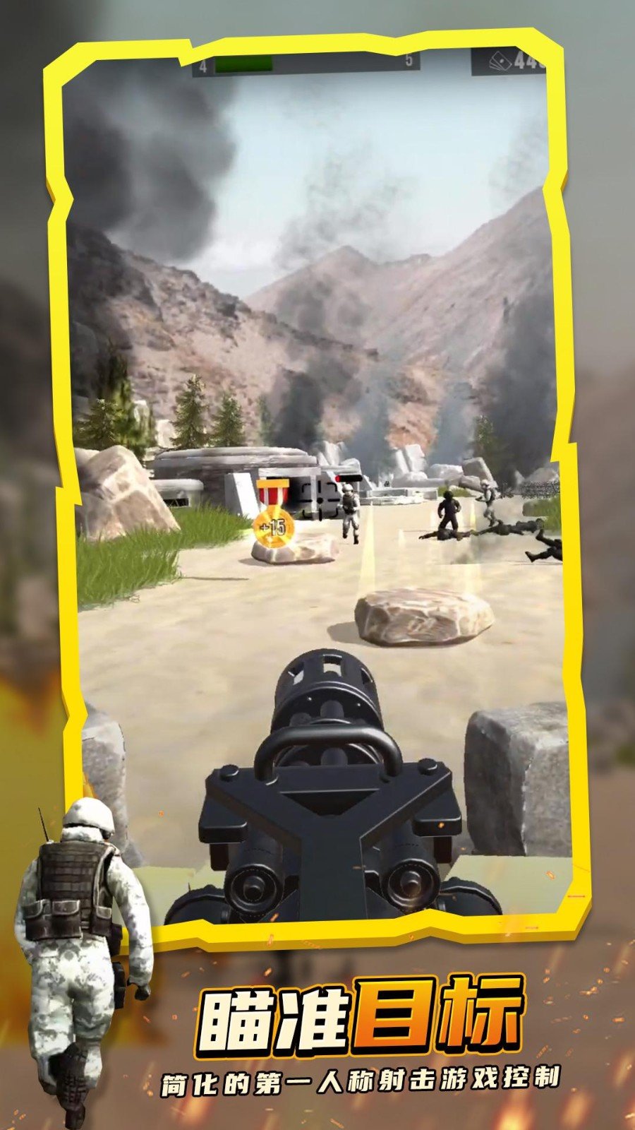 2.第一人称的射击控制,沉浸式代入射击战场,感受不同的射击乐趣,超多关卡等你来挑战。