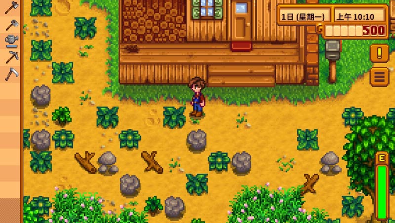回到农场,在自己的住家前面,有一个储存木头的地方,在木头的地方点下去,