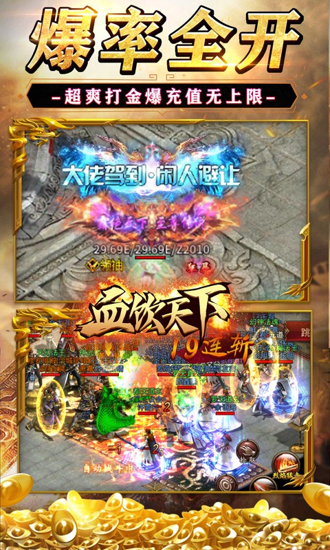 1.爆率全开,超爽打金爆充值无上限。