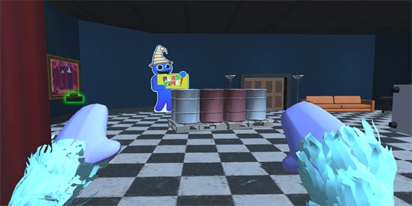 3、你可以躲在你随身携带的纸箱下躲避蓝色怪物,但当你看到绿色怪物时一定不要这样做。