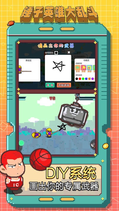 锤子英雄大乱斗diy武器是一款非常好玩有趣的创作游戏,游戏中玩家可以选择各种各样的角色,然后使用自己制作的武器与其他玩家进行比试,操作十分简单好上手,玩法十分的好玩。喜欢的玩家快来下载体验吧!