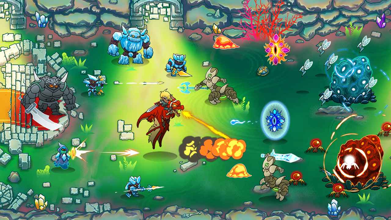 3、招募英雄和士兵、建造防御塔、使用魔法和各种道具、灵活选择局内技能形成build套路,在100多个关卡中消灭一波又一波的敌军威胁。穿越茂密的森林和岩浆迸发的神殿,打败一批批由史莱姆,巨人,恶魔蝙蝠和更多怪物组成的恶魔军团。