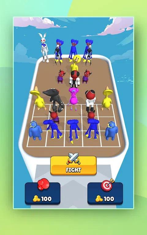 游戏融入了十分热门的彩虹朋友元素,并以合成士兵对战作为核心玩法的合并游戏。在这款游戏中,玩家将成为各位彩虹朋友的指挥官,收集多种彩虹朋友角色组成自己的出战阵容,并依靠聪明的战术策略来赢得一场场对战的胜利。