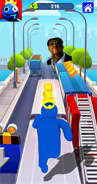 1.超级带感的跑酷操作方式,你可以通过指尖微操控制彩虹朋友的左右移动,帮助你收集更多的金币。