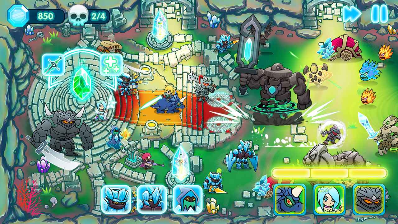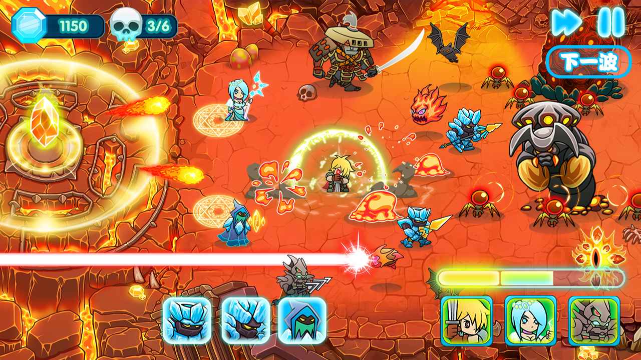 3、招募英雄和士兵、建造防御塔、使用魔法和各种道具、灵活选择局内技能形成build套路,在100多个关卡中消灭一波又一波的敌军威胁。穿越茂密的森林和岩浆迸发的神殿,打败一批批由史莱姆,巨人,恶魔蝙蝠和更多怪物组成的恶魔军团。