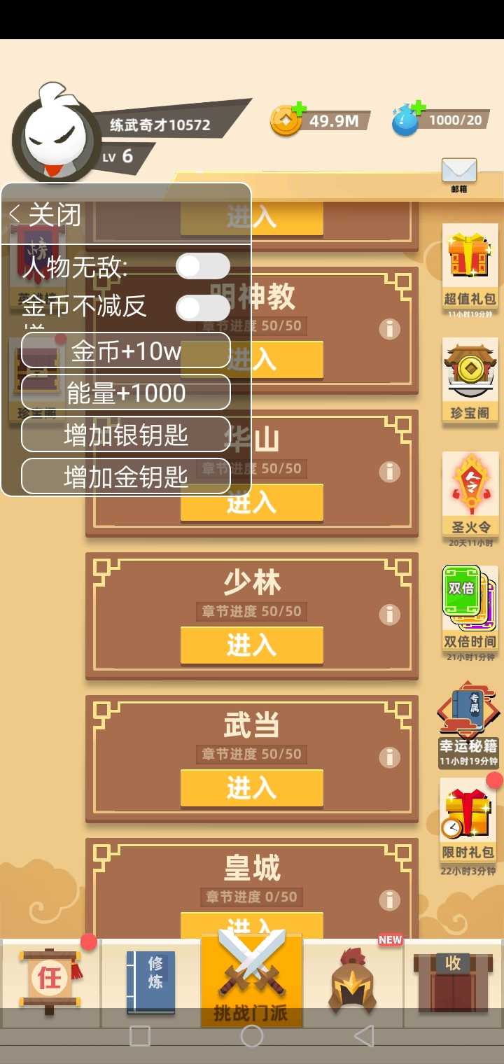 我功夫特牛(mod菜单)这个版本中你可以修改各种参数,一键点击修改即可,重启游戏之后就能体验到了。非常刺激的动作游戏,操控着角色跟对手对抗,利用不同的武器道具,小心敌人阴险出招,保护好自己,完成一个又一个的任务,解锁更多的章节和剧情故事,完成任务来推动剧情的发展。