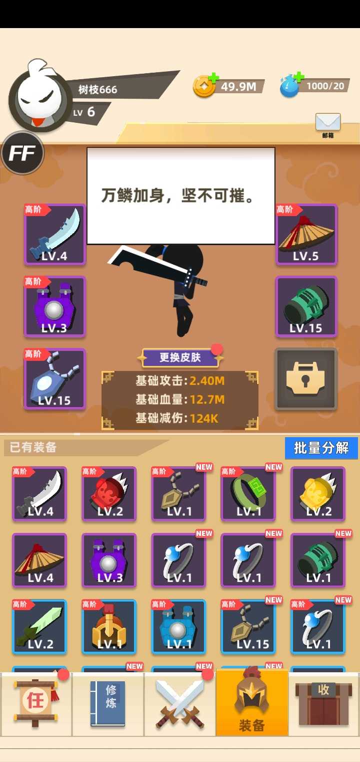 4、面对更强大的敌人,玩家可以不断升级装备,然后在一定时间内提高自己的实力。