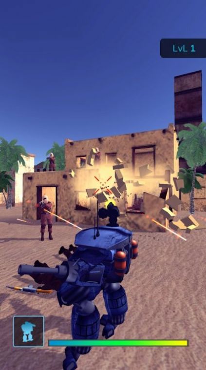 《机甲防御Mech Defence》是一款休闲模拟动作类游戏,玩家将在游戏中驾驶一架强大的机甲对恐怖分子进行武装打击,使用机甲的强大炮火对敌人进行扫射,但也要小心敌人的攻击,机甲的防御力非常高,但也不是无敌的。机甲防御游戏的玩法简单爽快,控制机甲可以以一敌百,圆你一个机甲梦想。