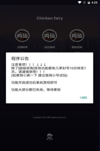 4、一款手游辅助软件,和平精英鸡仙软件有众多功能帮助你轻松吃鸡愉快游戏;