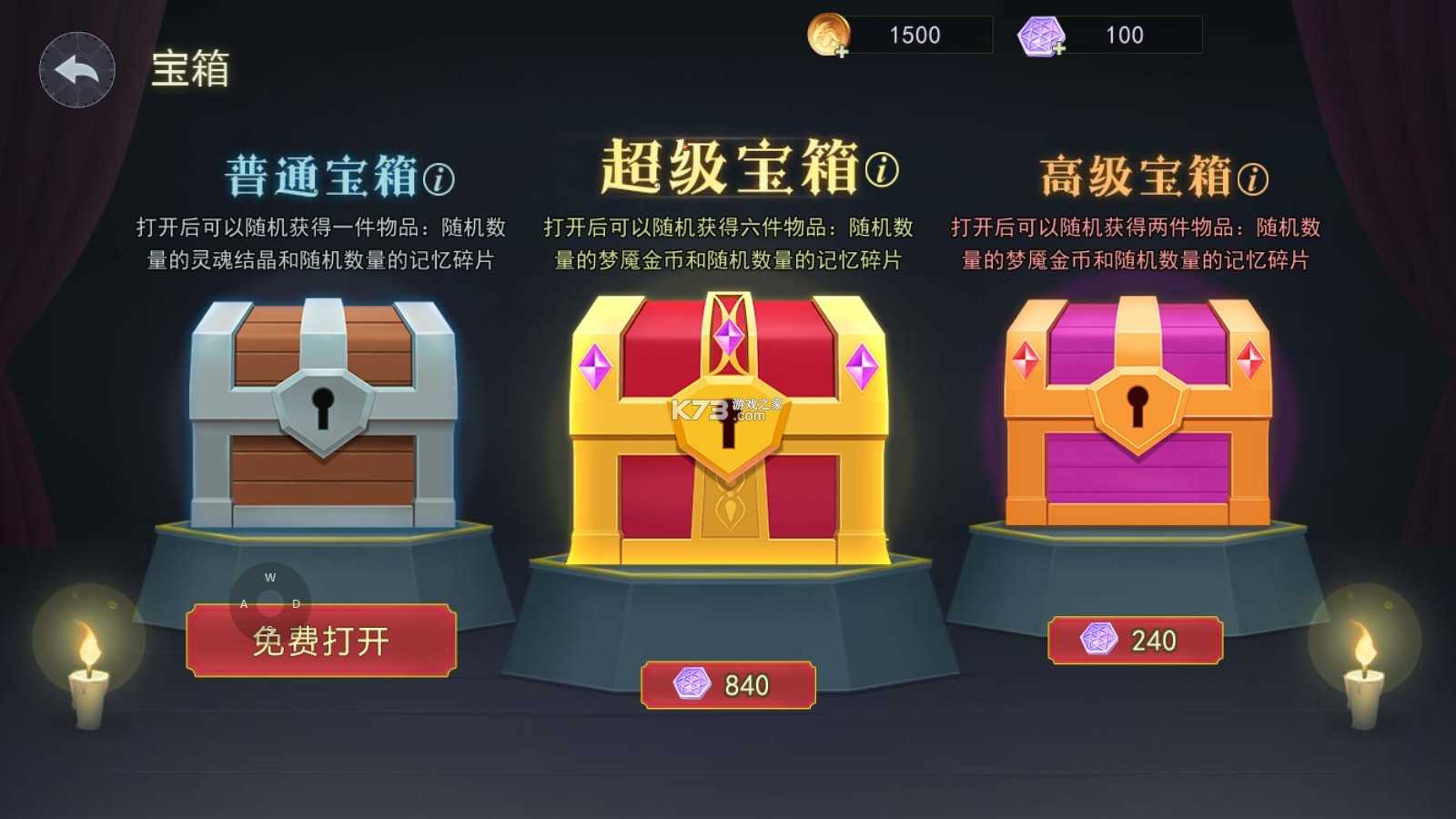 寻找宝箱打开宝箱获得宝石,破解宝箱需要一定时间,