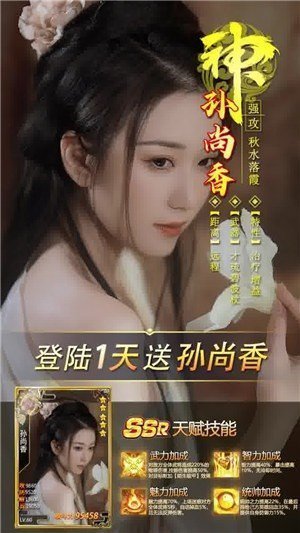 可以收集三国时代的知名武将和诸位美女,特色培养升级,亲密互动,打造专属三国猛将。