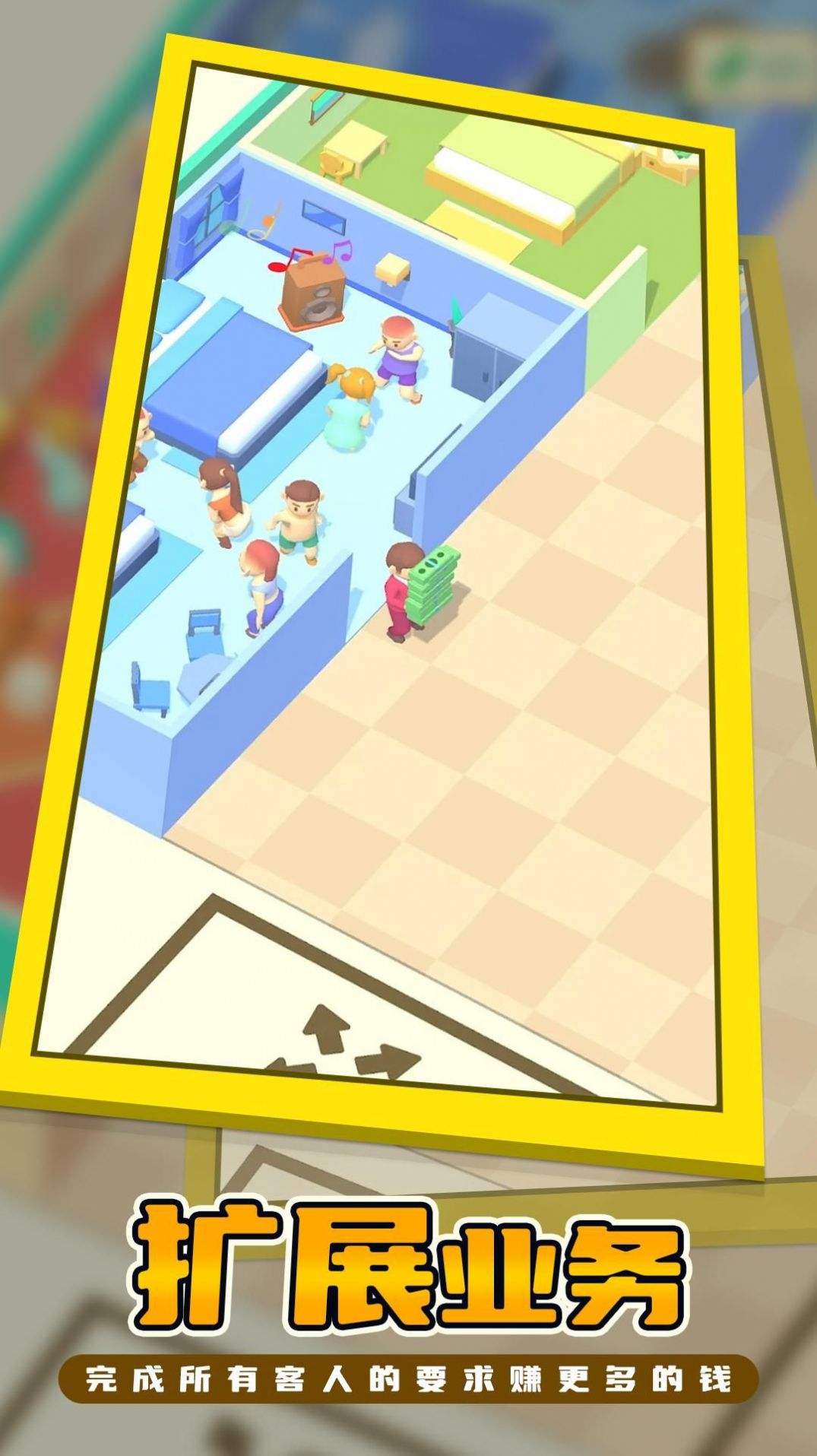 我的连锁酒店是一款风格独特的模拟经营类游戏。在游戏中你将会扮演酒店老板的身份来经营你的酒店。要想经营好你的酒店你需要做的包括选择合适的地段,解锁员工数量,保持酒店干净的环境,以及对你的酒店进行扩张实现连锁,从而来赚取丰厚的利益。当你把这一切安排的井井有条的时候,那么恭喜你已经是一个合格的酒店老板了。感兴趣的玩家快来建造属于你的酒店吧。