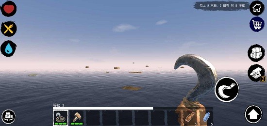 3、收集游戏中遇到的各种资源,包括生活物资,武器以及加固自己的船只物品。