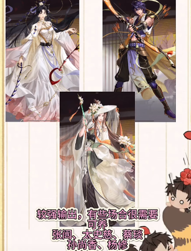 袁基:袁基看似温润如玉,实际上是个反派角色,可以理解为白切黑。他是剧情的幕后推手,与玩家扮演的角色有大量的剧情交互。