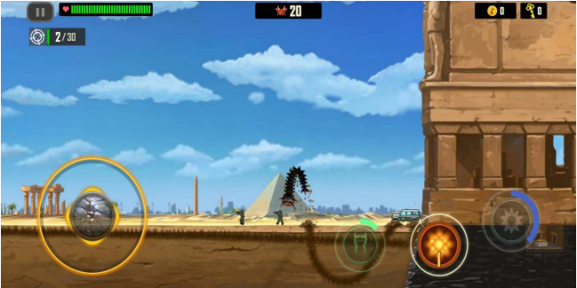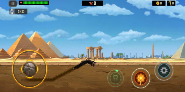 1.左侧的虚拟按钮用于控制蠕虫的上下,左右移动,右侧的技能按钮可以增强蠕虫的攻击能力;