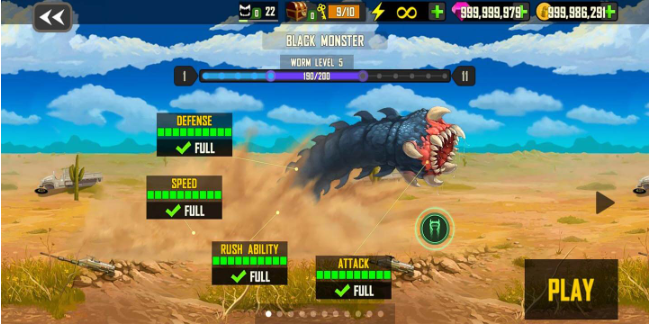2.在此游戏中,玩家将扮演一个地下食人兽的角色,使人感到恐惧,不断地钻出地面吃掉地面上的人和动物。