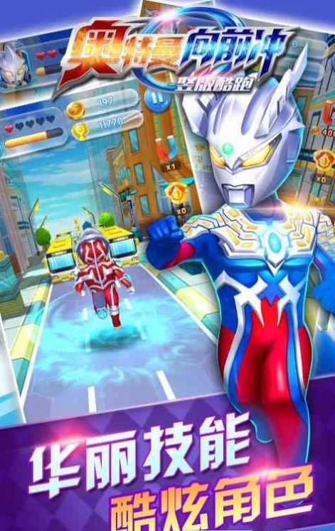 奥特曼向前冲游戏是一款以奥特曼赛跑为主题的休闲跑酷游戏,游戏采用了3D引擎技术将奥特曼卡牌角色Q版3D化在各种赛道上进行跑酷比赛。游戏中基本制作了目前已有的大部分奥特曼角色,玩家可以自由选择自己喜欢的角色。游戏添加了大量道具让游戏更加充满趣味性。游戏中还添加了社交系统,玩家可以分享自己的成绩,或者同别的玩家一起竞赛。