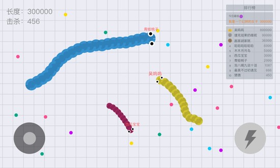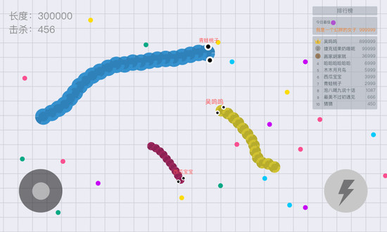 2、玩家控制蛇吃豆子,它的身体变得很长,当它变成最长的蛇时,它就赢了。