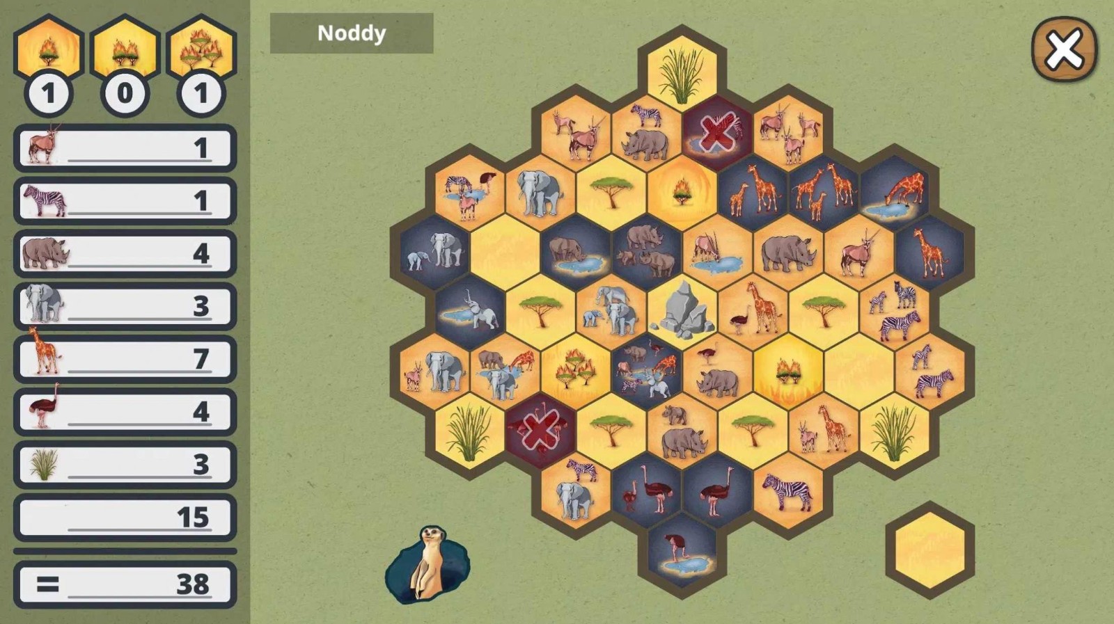 萨凡纳公园是一款改编自同名桌游的休闲策略游戏,游戏的主要玩法是每次给定一个动物,玩家要在地图上安排该动物的位置,要求是同类尽量相聚在一起的同时,避开草原上的篝火。游戏对玩家策略安排要求很高,前期的选择可以有很多,但是后期位置变少,如果前期不安排好就很容易导致游戏失败。