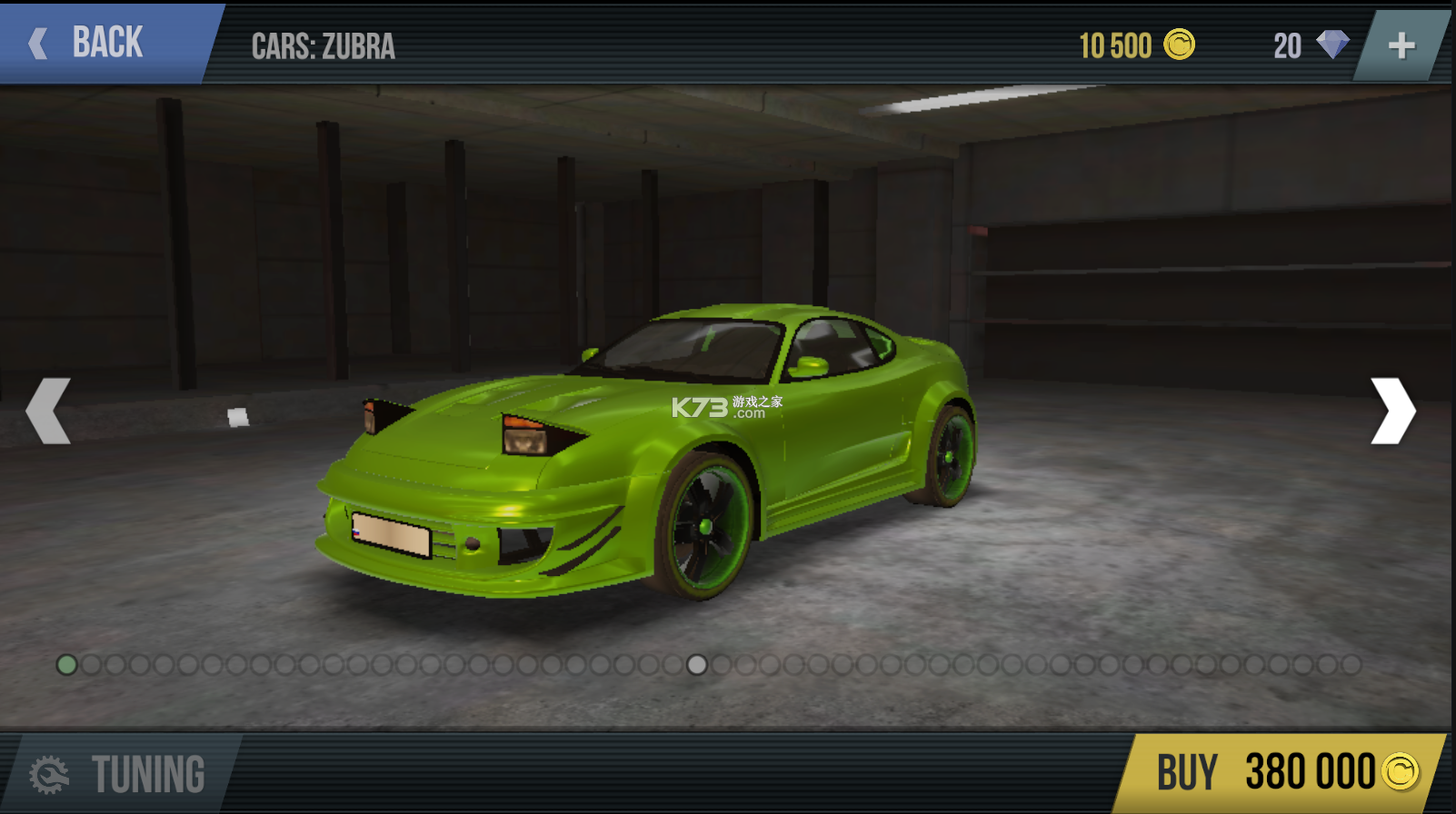 2、接着进入到赛车模式之后,中间就可以看到一个大大的赛车,往右切换画面可以解锁新赛车,点击赛车下面的开始图标进入游戏。