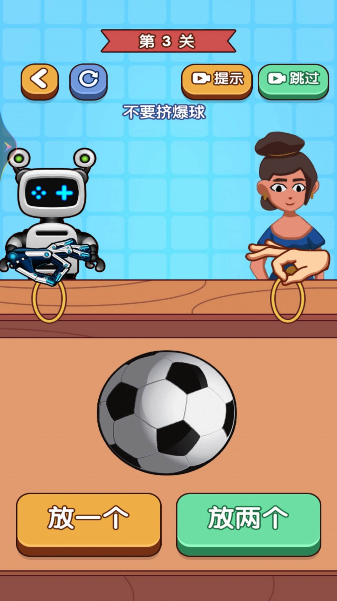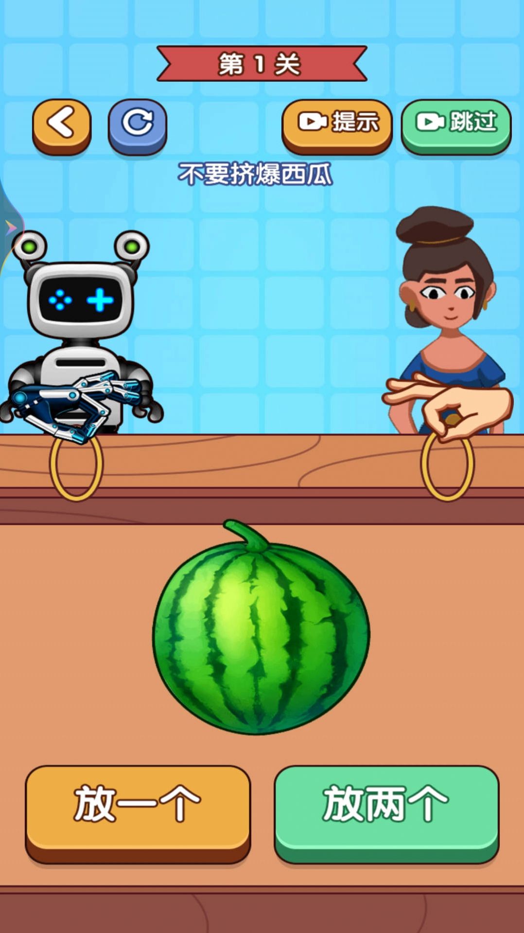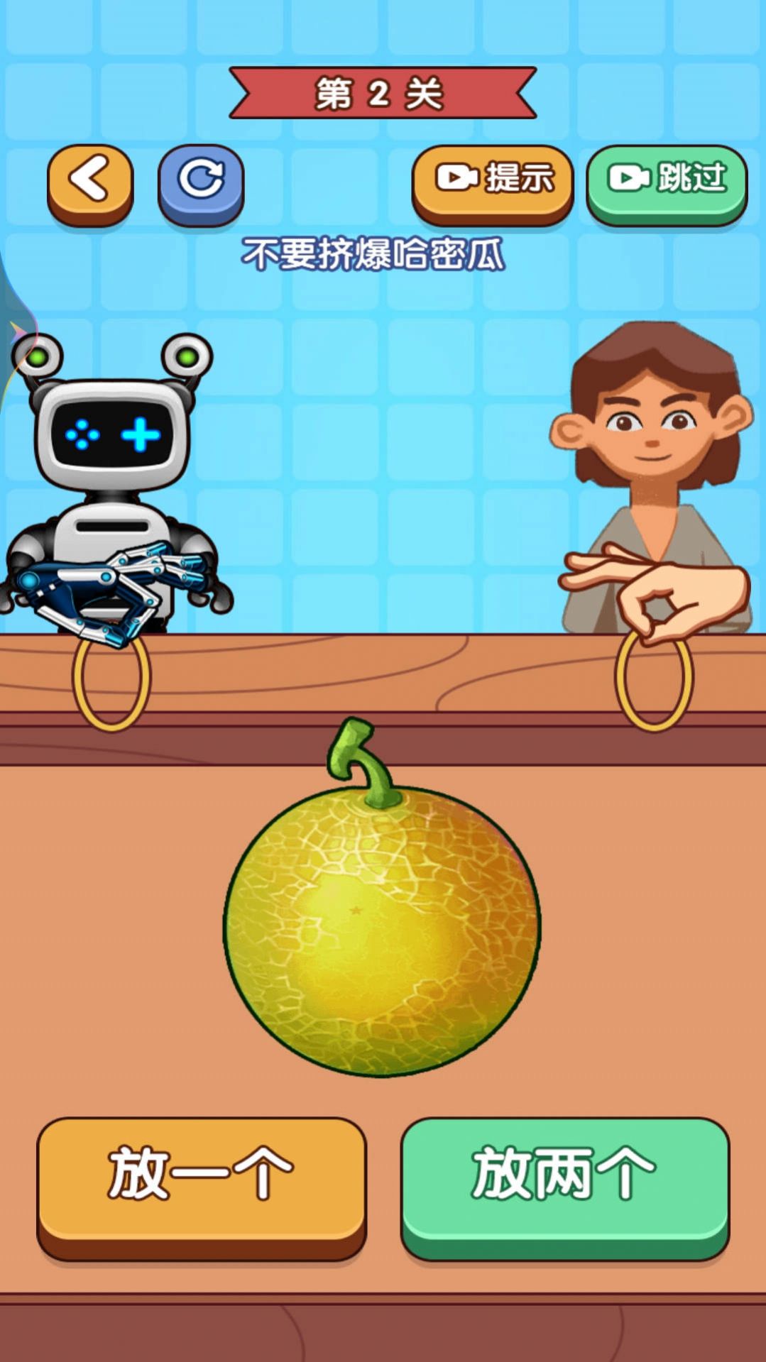 你先出招吧是一款以放置橡皮筋为主要玩法的休闲游戏,游戏的主要玩法是把橡皮筋绑在物体上,同时物体不能被挤爆。玩法非常简单,但其实也很考验玩家的思维能力,玩家需要尽力放置多的橡皮筋来获得更高的分数,当然要考虑这些物体能否承受,如西瓜就可以多放几个橡皮筋,而蛋糕这种就只能少放一些。