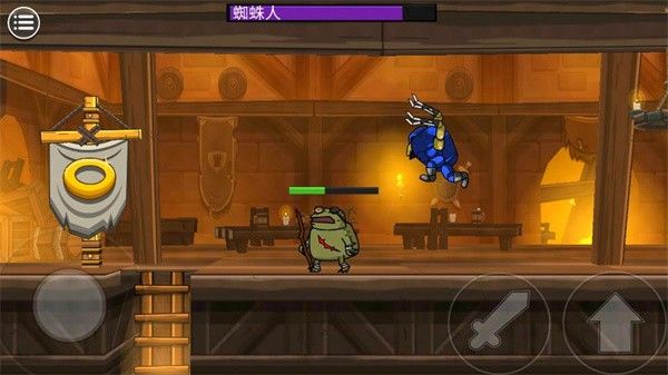 BOSS吐出的第二种火焰位置是在上方的,玩家无法用跳跃躲避,这时候要向下滑动屏幕,玩家下蹲才能躲避火焰,如图所示。