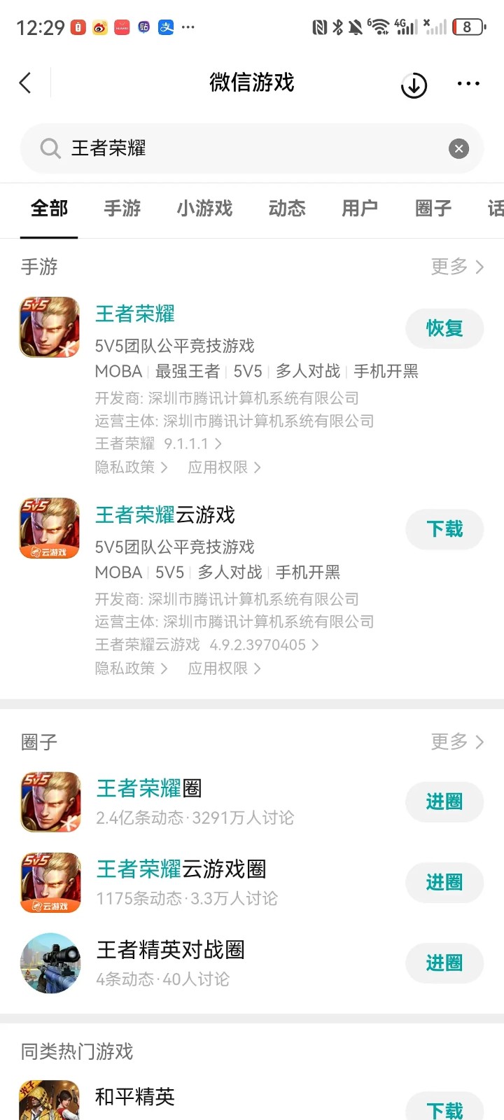 微信-游戏搜王者荣耀,点王者荣耀云游戏下载,内存mb,几秒就能下好点开玩,但是每天只能玩一个小时,并且只能微信登录。