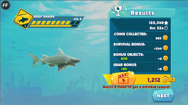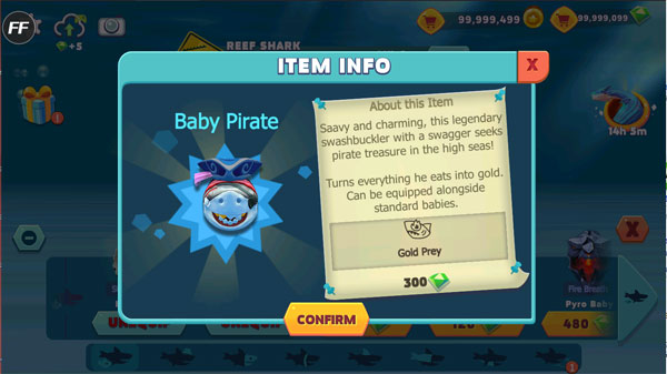 升级你的鲨鱼装上超酷的装备,咬合更用力、游的更迅猛变得更贪婪!每只蓄势待发的鲨鱼都需要、耳机、雨伞还有超炫的喷射背包!