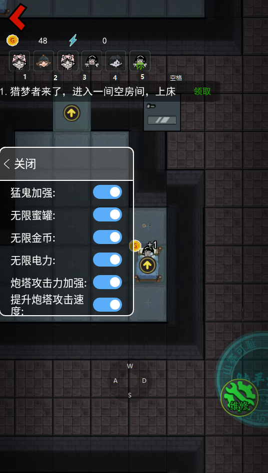 1、消除手机游戏中的危险鬼魂,成功击败宿舍和我们的鬼魂。