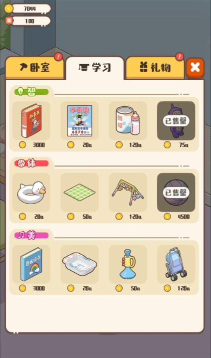2、利用金币购买各种不同的家具来装饰房间,让娃娃在更舒适的环境下成长。