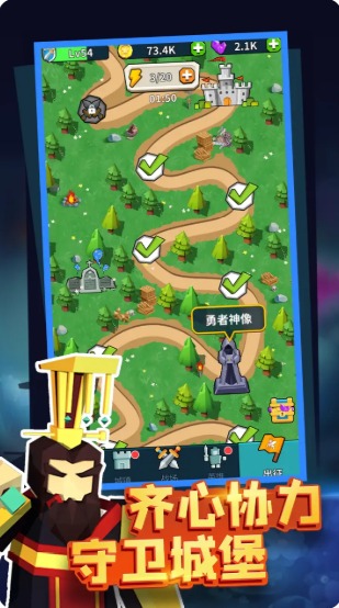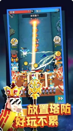 2、加油!与国王一起,收集资源,建造城堡防御工事,对抗黑暗势力,保卫家园!