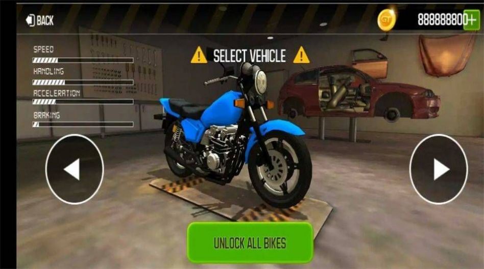 3、游戏有多种不同的摩托车,每一种摩托车都拥有不同的属性和特点。