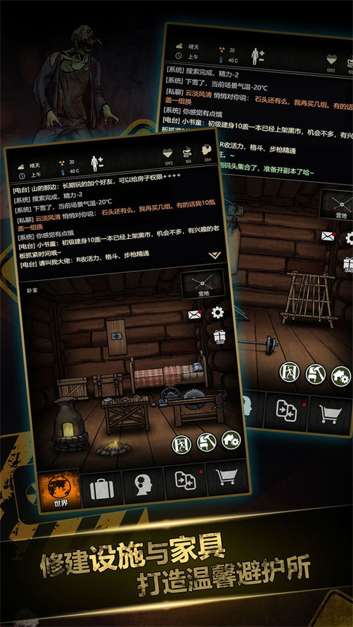 除了野外探索,更多的时间需要玩家完成自给自足,因此在这里你可以种植瓜果蔬菜来建立一条能够果腹的食物链,同时也要时刻紧盯其他幸存者和僵尸的动静,以防被偷袭。