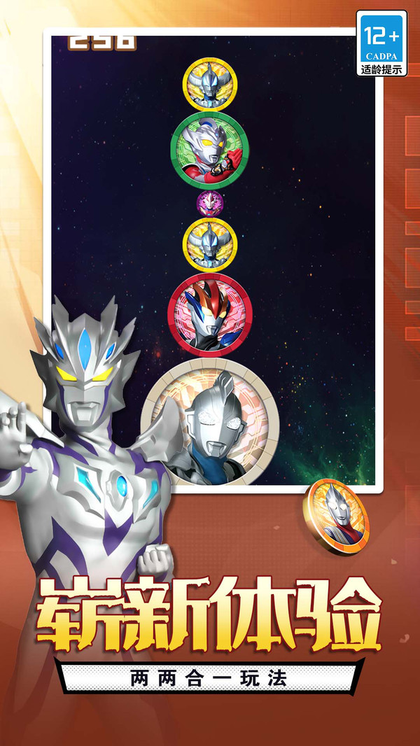 1.玩法有点像2048小球合成,不过在这里则是以奥特曼为题材的小球合成游戏。