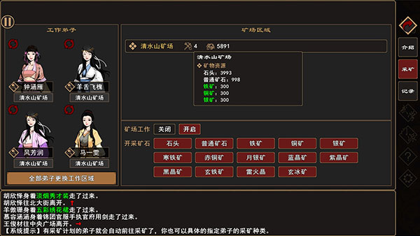 3、玩家可以招收心仪的弟子,每个弟子都有不同的人物经历和天赋属性经营部分提供了多种产业建筑供你选择。