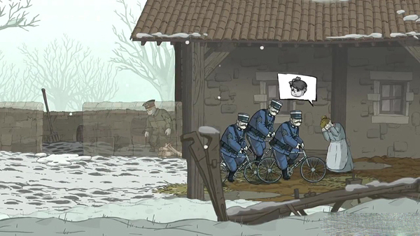 3、一段漫画风格的冒险:从法国乡村郁郁葱葱的森林到黑暗的战壕与下雪的田野,这部动人的游戏作品以独特的色调和艺术风格带领玩家回到那段曾经的历史当中。