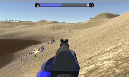 2.第一人称视角观察战场,敌军隐藏的位置被发现,包剿战术让他们全灭。