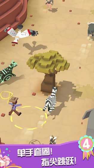 2、在遇到新动物后,先骑着当前的动物跑到新动物身后,接着松开手指,然后落在新动物的背上,再按住屏幕不要松开,然后拖动手指移动来躲避前方的障碍物,当屏幕中的【红心】进度条变满之后,就可以成功获取这个新动物了。