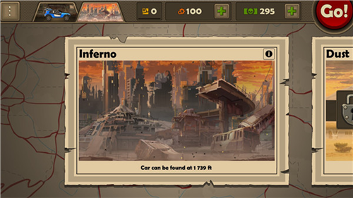 3、游戏的细节做的很棒,在升级界面中,当你升级引擎或变速箱时,在战车的前端会有略微的下沉,在战车行进的过程中,重量分配不均就会容易后翻或前倾影响车速,这个时候就需要在车库里购买升级重新配重,这对战车的稳定性十分重要。在升级轮胎的前后对比中,上坡时的爬力会明显的体现出来。小编认为武器配置设计的不是很好,武器是自动发射的,一枪一个,打完就废了,而且只能够对僵尸进行射击,如果把它改为玩家手动触发能够升级为更强大的火炮就更爽了,而且对障碍物和建筑物业能够进行攻击的话,那画面感就更是上了另一个境界了。