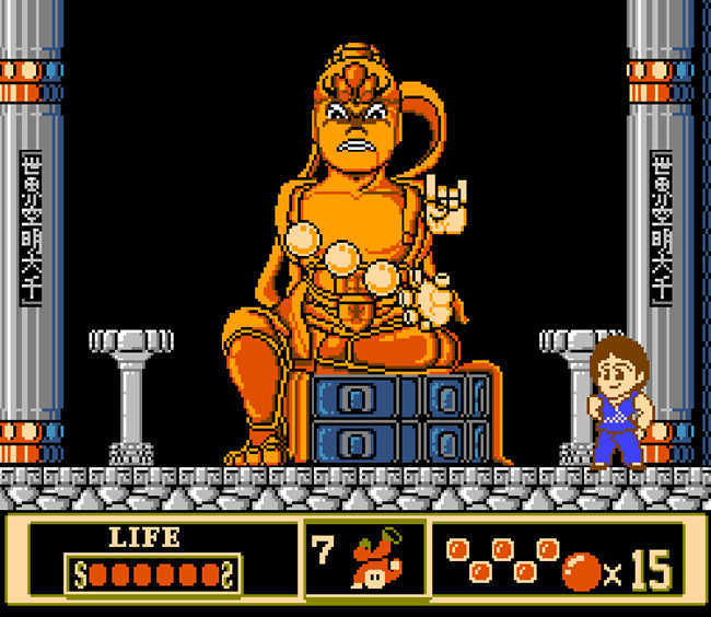 Boss1:无常童子----近距离他会使用横踢攻击,离远则会巨球,跳跃避开,要注意时机。受到攻击后,会向主角跳过来,避开反击,他比较耐打,只要有信心,胜利就在眼前。对付这个BOSS最好的战斗方式时是,跳过远处无常童子发的巨球,之后从空中落下时迅速踢中他一击,他受到攻击就回跳到那边。反反复复地循环,直到将他打死。
