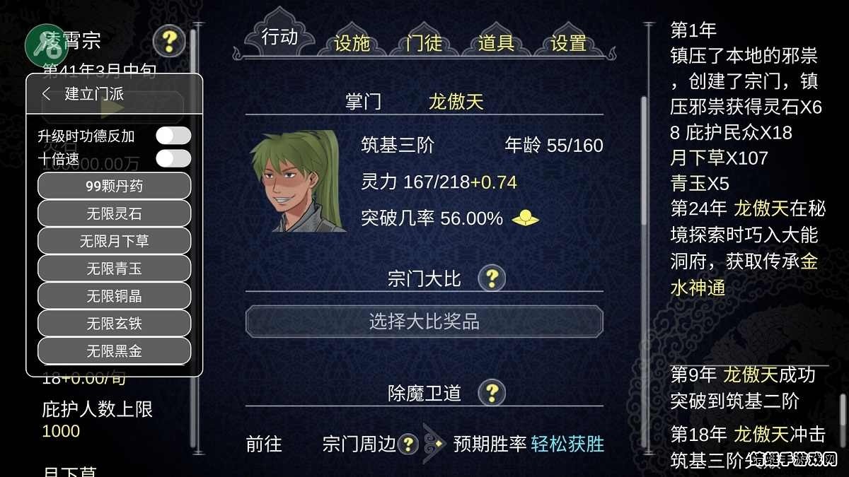 2.自由度的玩法:游戏提供自由度的玩法,玩家可以根据自己的喜好和策略选择进行修炼和建设,获得不同的修仙路线和成就。