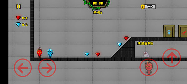 3、不同颜色的角色只能收集相应颜色的宝石以及进入相应颜色的门