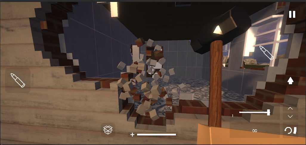 1、精细的3D立体画风塑造的场景,在拆家的时候你能够看见这些立体像素的破坏和拼接。