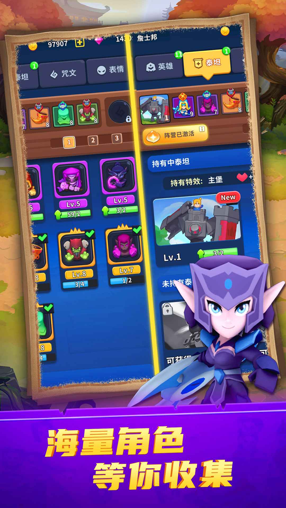 收集多种强劲英雄,根据个人喜好进行排列组合,任意搭配,打造最强守卫者军团!